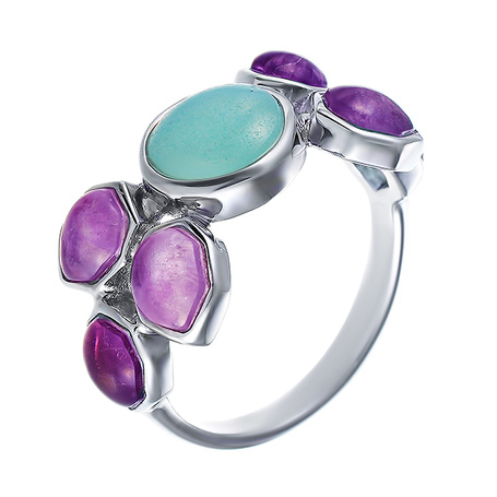 Кольцо из серебра 925 пробы с аметистами и амазонитами