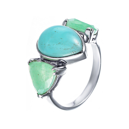 Кольцо из серебра 925 пробы с авантюринами и амазонитами