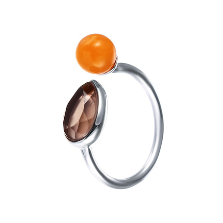 Кольцо из серебра 925 пробы с авантюринами и раухтопазами
