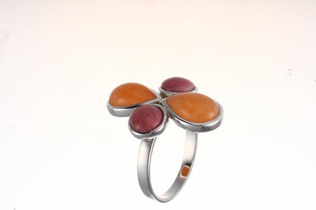 Кольцо из серебра 925 пробы с агатом и родохрозитами