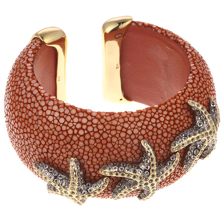Браслет из серебра 925 пробы с топазами и кожей ската