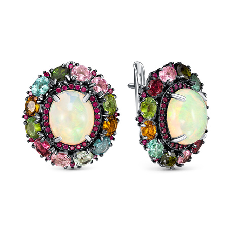 Серьги из серебра 925 пробы с опалами, турмалинами и корундами