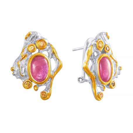 Серьги из серебра 925 пробы с рубинами и сапфирами
