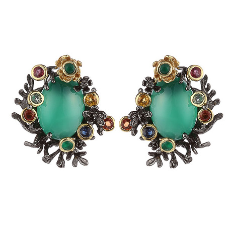 Серьги из серебра 925 пробы с перидотами, турмалинами и сапфирами