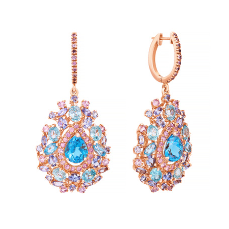 Серьги из серебра 925 пробы с топазами, сапфирами и танзанитами