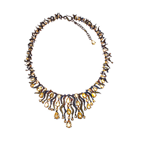 Колье из серебра 925 пробы с цитринами и сапфирами