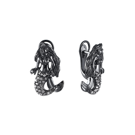 Серьги из серебра 925 пробы с фианитами и эмалью