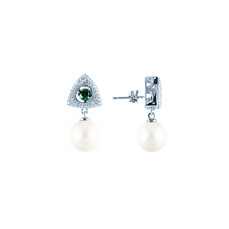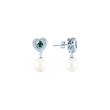 Серьги из серебра 925 пробы с фианитами и жемчугами
