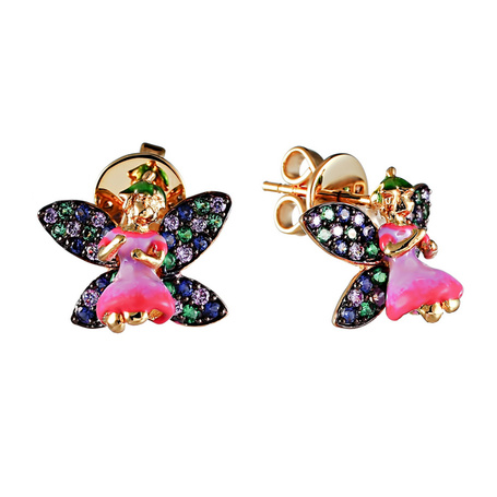 Серьги из серебра 925 пробы с фианитами и эмалью
