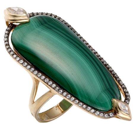 Кольцо из серебра 925 пробы с малахитами и фианитами