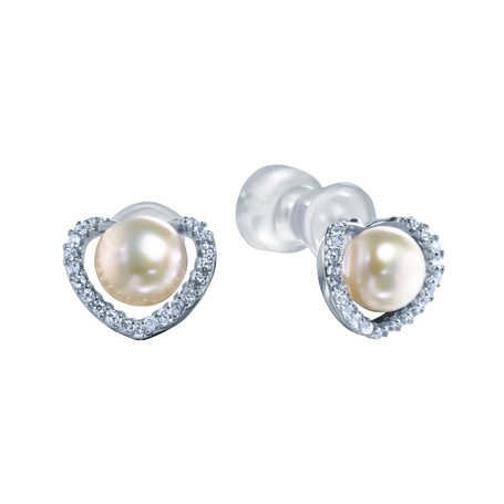 Серьги из серебра 925 пробы с жемчугами и фианитами