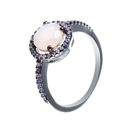 Кольцо из серебра 925 пробы с фианитами и эмалью