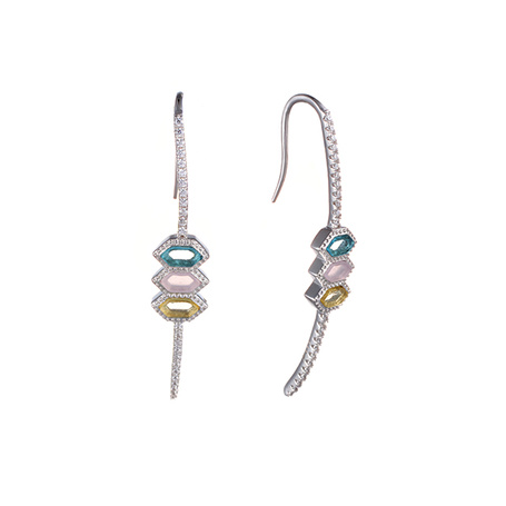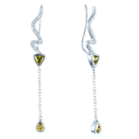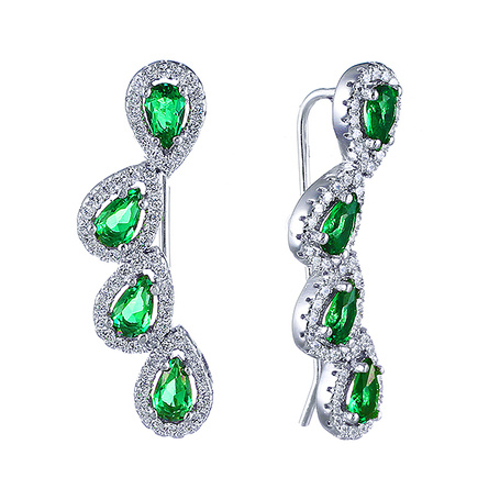 Серьги из серебра 925 пробы с ювелирным стеклом и фианитами