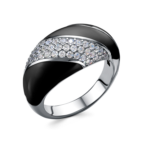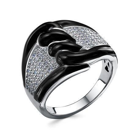 Кольцо из серебра 925 пробы с фианитами и эмалью
