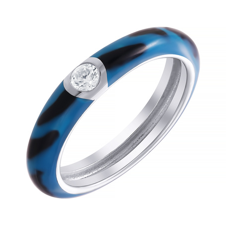 Кольцо из серебра 925 пробы с фианитами и эмалью