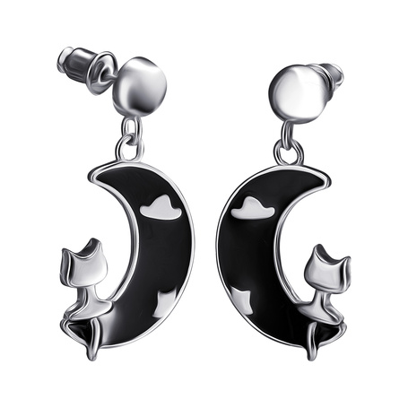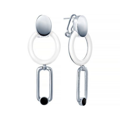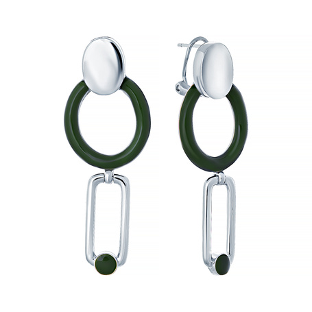 Серьги из серебра 925 пробы с фианитами и эмалью