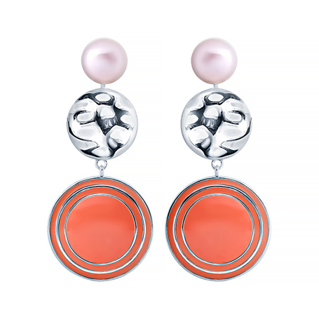 Серьги из серебра 925 пробы с барочным жемчугом и эмалью