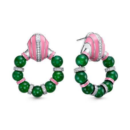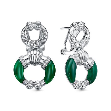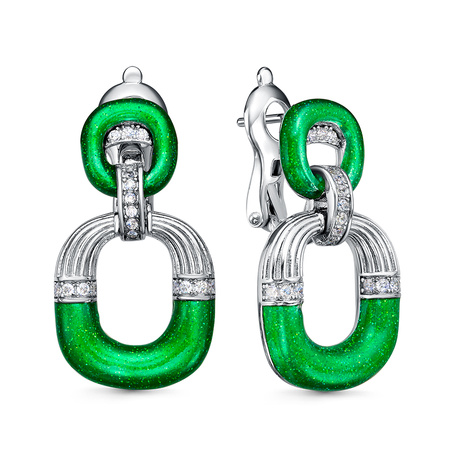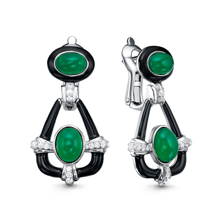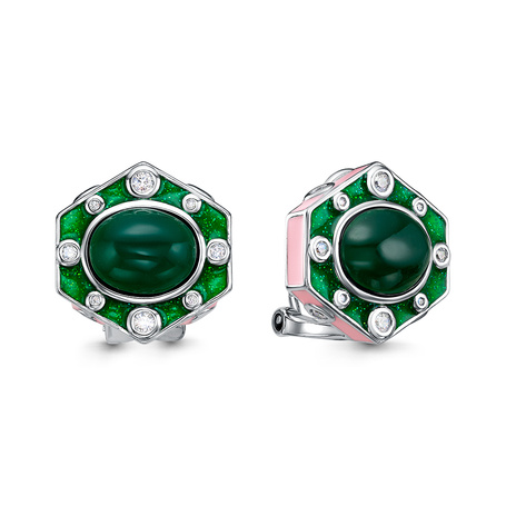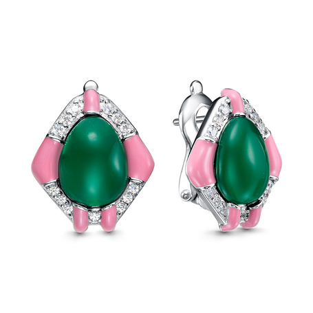 Серьги из серебра 925 пробы с агатом, эмалью и фианитами