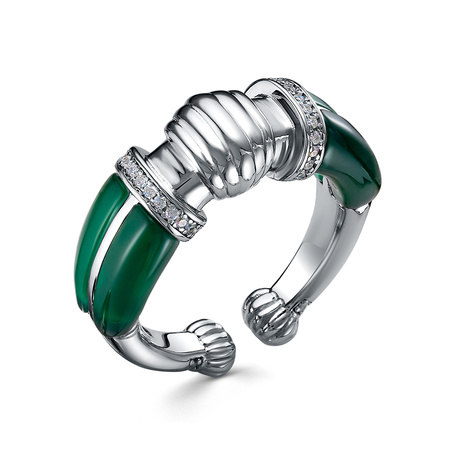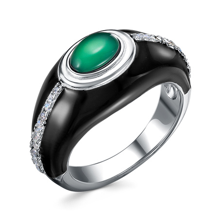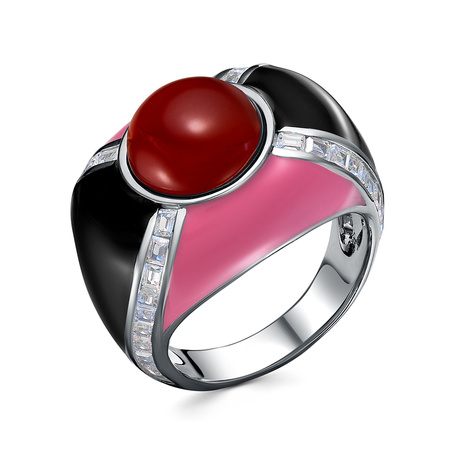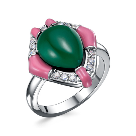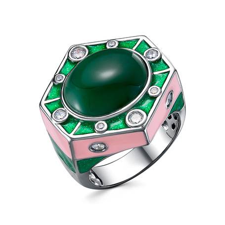 Кольцо из серебра 925 пробы с агатом, эмалью и фианитами