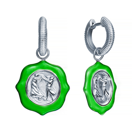 Серьги из серебра 925 пробы с агатом, эмалью и фианитами