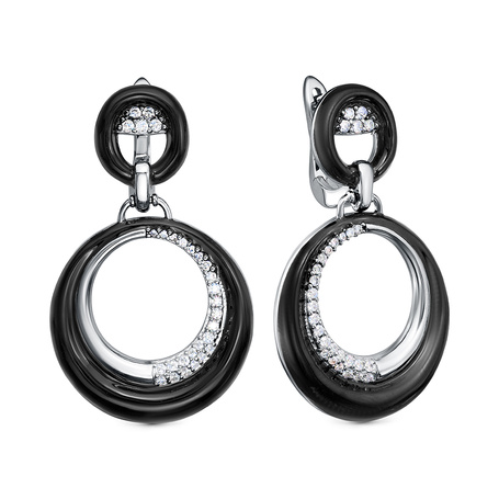 Серьги из серебра 925 пробы с эмалью и фианитами