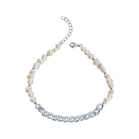 Браслет из серебра 925 пробы с жемчугами и фианитами