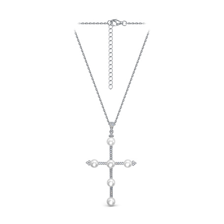 Колье из серебра 925 пробы с жемчугами и фианитами