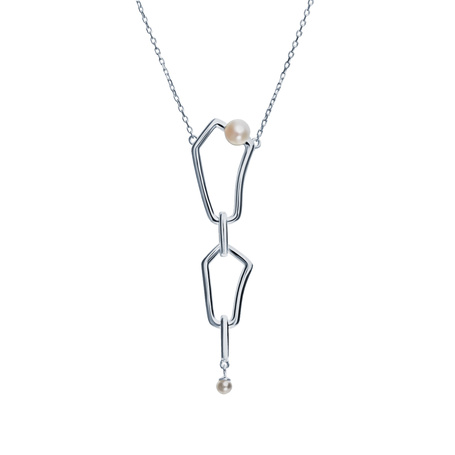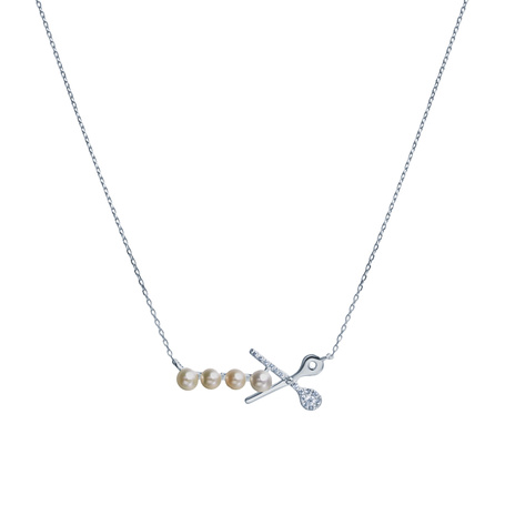 Колье из серебра 925 пробы с фианитами и жемчугами