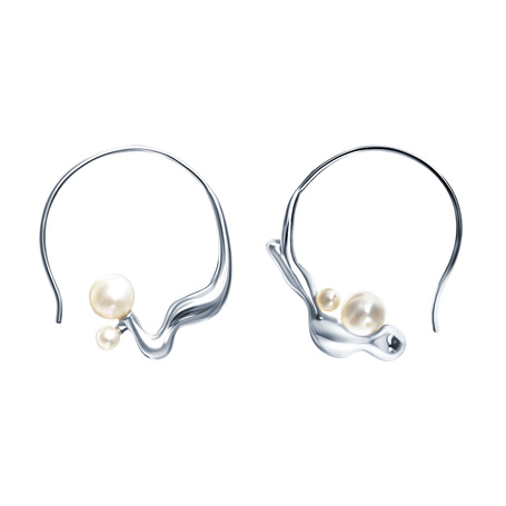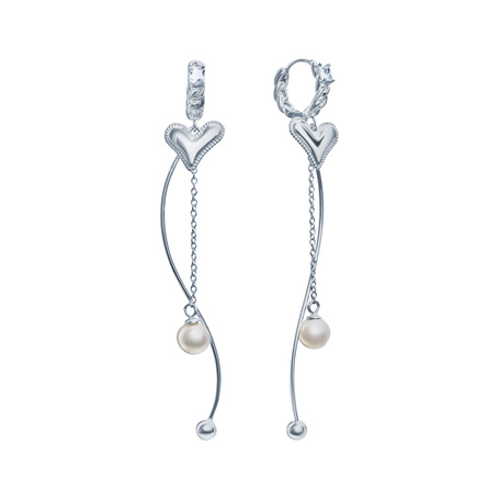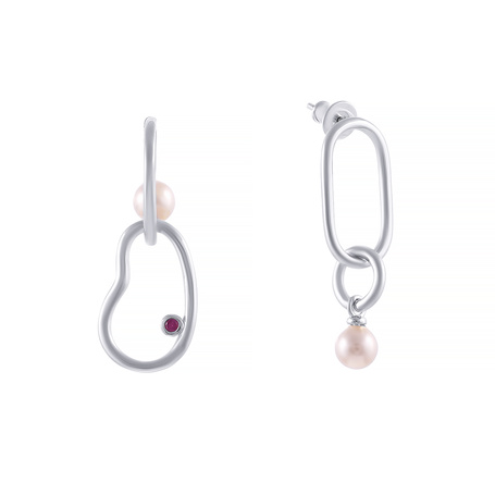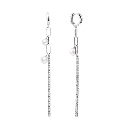 Асимметричные серьги из серебра 925 пробы с жемчугом майорика и фианитами