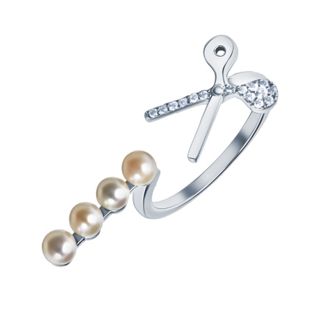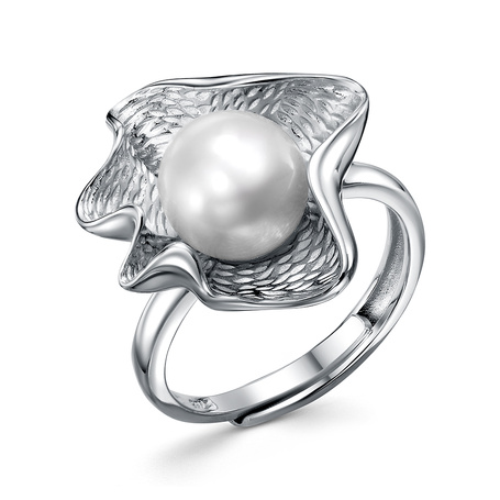 Кольцо из серебра 925 пробы с фианитами и жемчугами