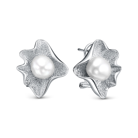 Серьги из серебра 925 пробы с фианитами и жемчугами