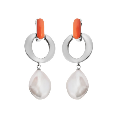 Серьги из серебра 925 пробы с барочным жемчугом и эмалью