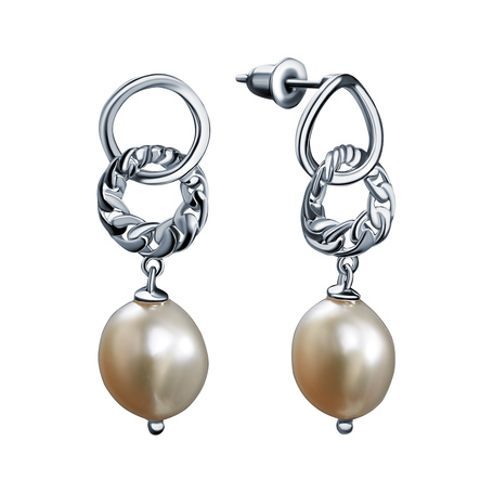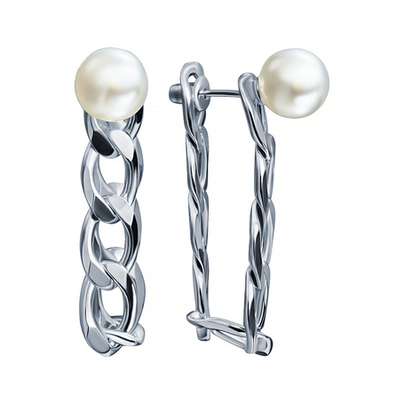 Серьги из серебра 925 пробы с жемчугами и фианитами