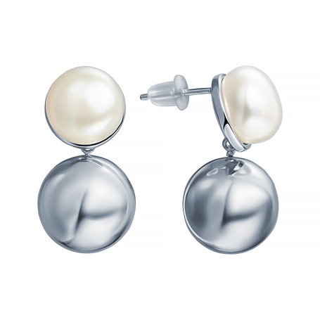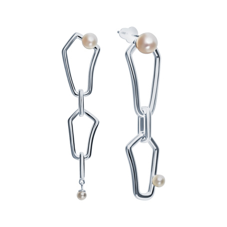 Асимметричные серьги из серебра 925 пробы с жемчугами