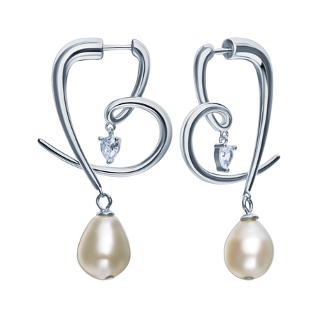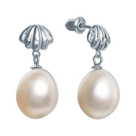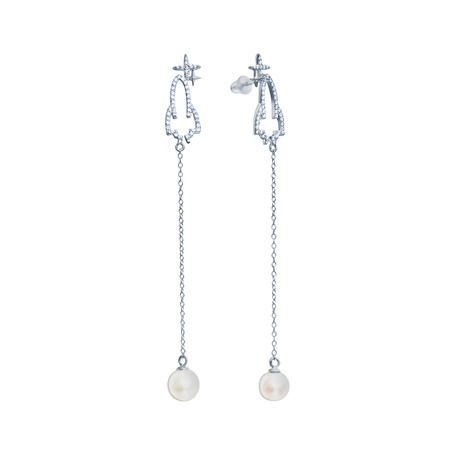 Серьги из серебра 925 пробы с фианитами и жемчугами