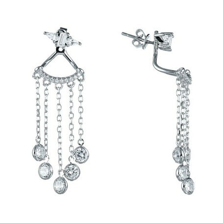 Серьги из серебра 925 пробы с фианитами и ювелирным стеклом