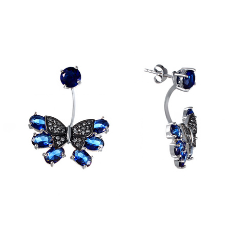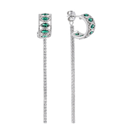 Серьги из серебра 925 пробы с фианитами и ювелирным стеклом