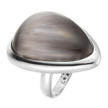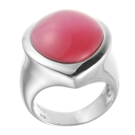 Кольцо из серебра 925 пробы с кошачьим глазом искусственным и фианитами