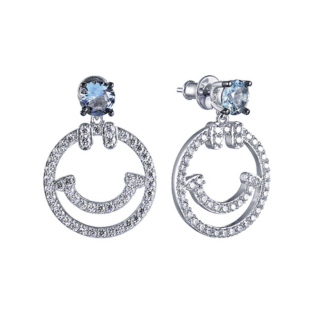Кольцо из серебра 925 пробы с фианитами и ювелирным стеклом