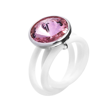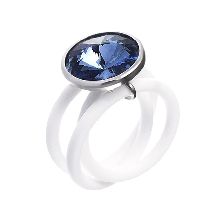 Кольцо из серебра 925 пробы с ювелирным стеклом и каучуком