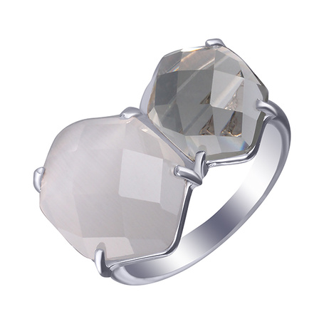 Кольцо из серебра 925 пробы с ювелирным стеклом и фианитами