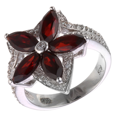 Кольцо из серебра 925 пробы с гранатами выращенными и фианитами