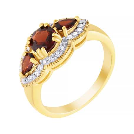 Кольцо из серебра 925 пробы с гранатами и топазами