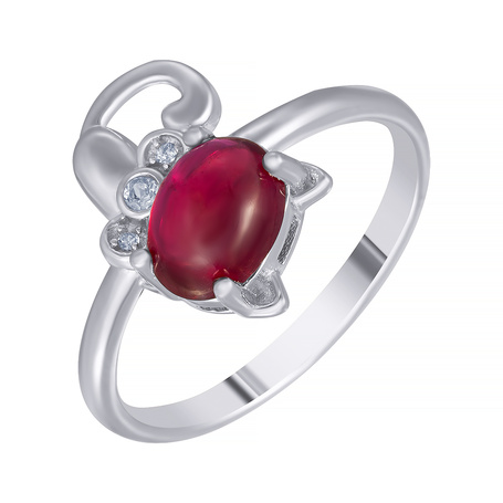 Кольцо из серебра 925 пробы с рубином облагороженным и фианитами