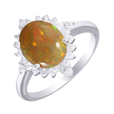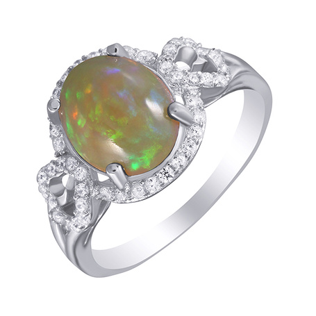 Кольцо из серебра 925 пробы с опалами и фианитами