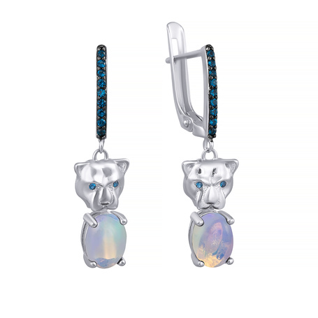 Серьги из серебра 925 пробы с опалами синтетическими и фианитами