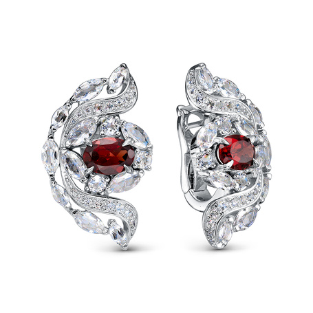 Серьги из серебра 925 пробы с гранатами и фианитами