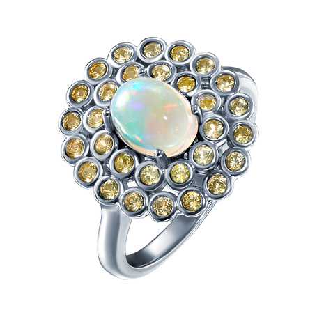 Кольцо из серебра 925 пробы с опалами и фианитами
