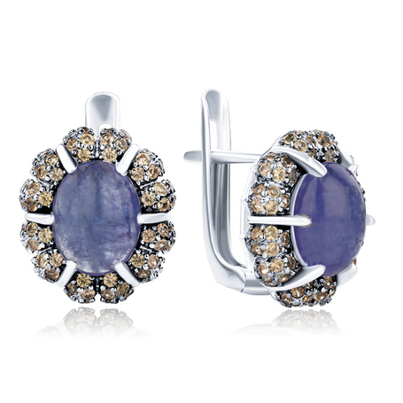 Серьги из серебра 925 пробы с танзанитами и топазами