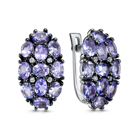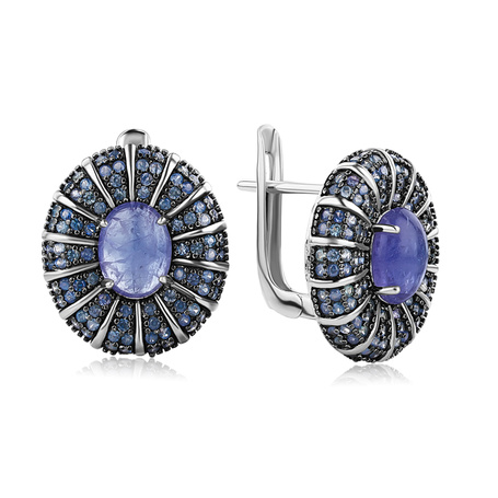 Серьги из серебра 925 пробы с танзанитами и сапфирами